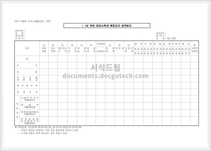 - 신고서 작성에 필요한 서류는 귀속 양도소득에 관련된 모든 정보 및 증빙자료를 포함해야 합니다. 이를 통해 세무청에서 귀속 양도소득세를 정확히 확정할 수 있습니다.