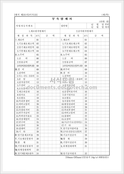 - 부속 명세서 작성 시, 각 항목의 세부 내용을 명확하게 작성해야 합니다.