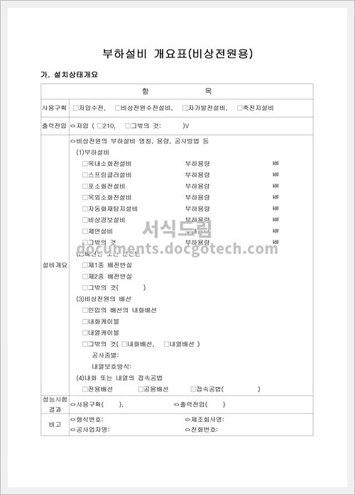 부하설비개요표 (비상전원용)는 주로 다음과 같은 용도로 사용됩니다.