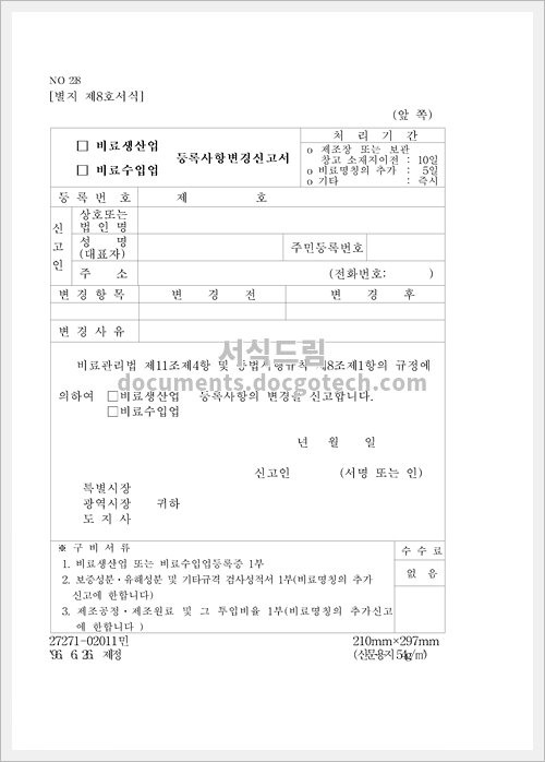 비료생산업(수입업)등록 사항변경 신고서 사용용도 및 작성시 유의사항
