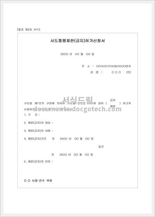 사도통행제한(금지)허가 신청서는 다양한 상황에서 사용됩니다. 예를 들어 :