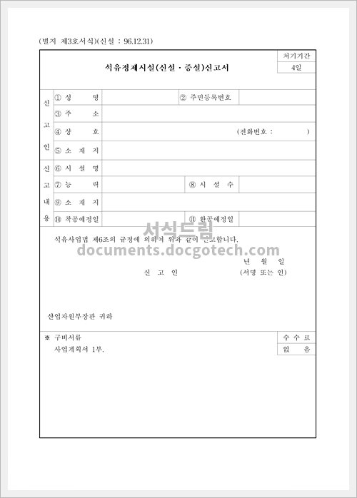 석유정제 시설(신설증설) 신고서 문서양식 HWP 무료 다운로드