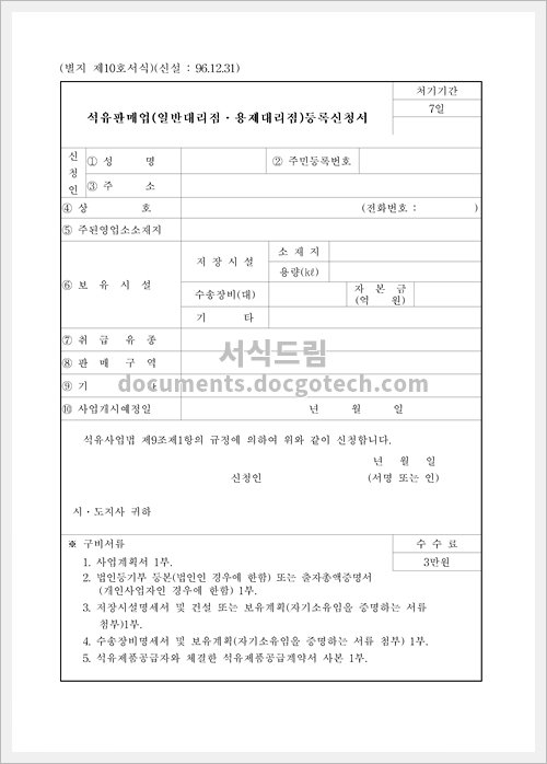 석유 판매업(일반대리점용제대리점)등록 신청