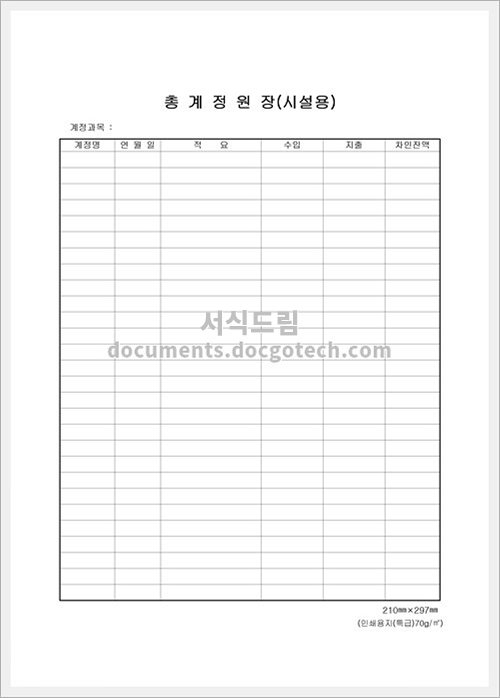 총계정원장 (시설용)은 조직의 재무 상황을 기록하는 도구입니다. 주로 기업이나 비영리 단체 등에서 사용되며, 자산, 부채, 자본과 같은 재무 항목의 변동 내역을 기록하고 감시하는 역할을 수행합니다. 이를 통해 조직의 재무 건전성을 평가하고 성과를 추적할 수 있습니다.