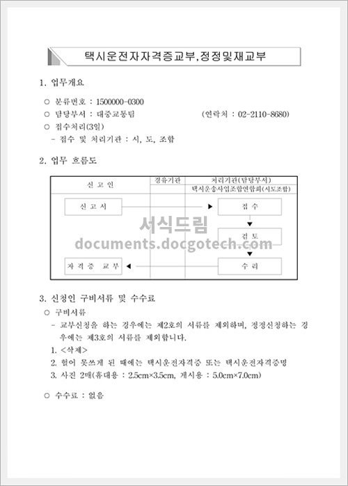 택시 운전자 자격증 교부, 정정및 재교부 신청서에 대하여