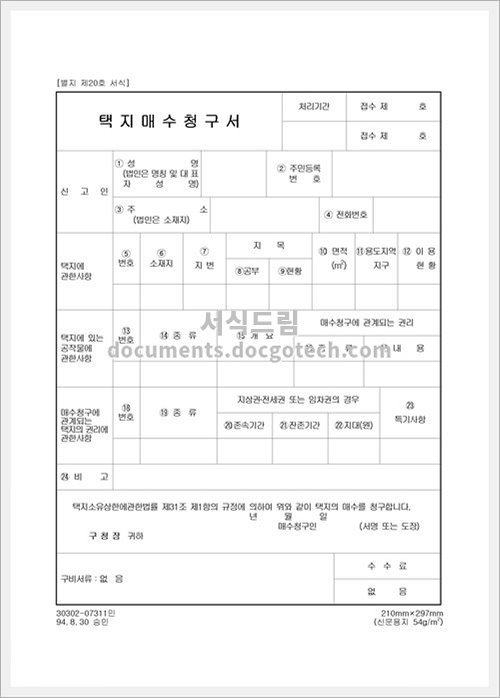 택지 매수 청구서에 대하여