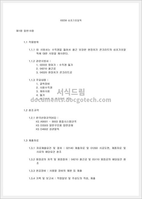 토목 공사 시방서(구조물 기초 공사-심초기초 문서양식 HWP 무료 다운로드