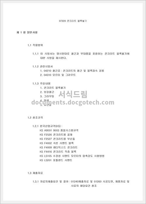 토목 공사 시방서 – 부지 시설 공사