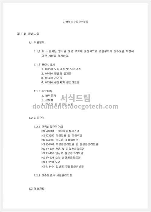 토목 공사 시방서 – 부지 시설 공사-하수도관부의 사용용도, 작성시 유의사항