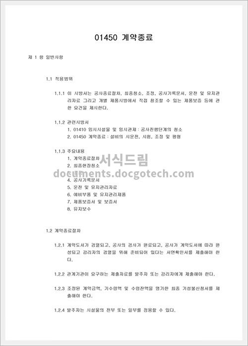 토목 공사 시방서(총칙- 계약종료)는 공사 계약의 종료와 관련된 사항을 기재하는 문서입니다.