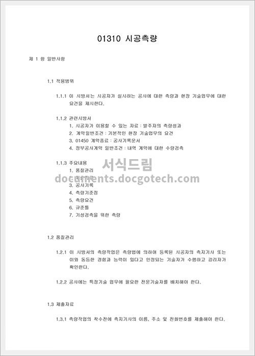- 정확성 : 시방서에 포함되는 측량 기준, 공법, 기술 등은 정확하고 일관성있는 내용이어야 합니다.