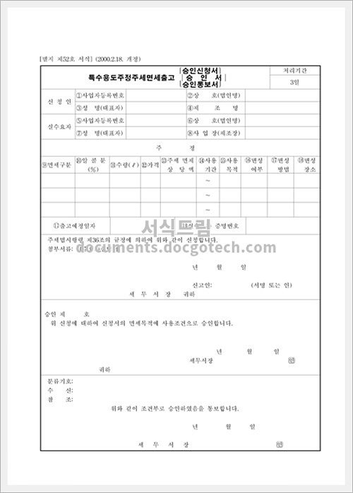 특수용도주정주세면세출고 승인 신청서 작성시 유의사항