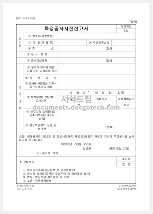 공사사전 신고서 작성 안내