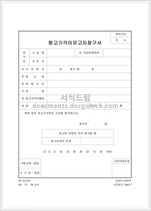 항고기각이유고지 청구서 문서양식 HWP 무료 다운로드