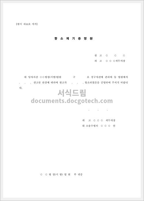 - 항소 제기 증명원은 법원에 제출되므로, 작성 후 철저히 검토해야 합니다. 필요한 수정 사항이 없는지 확인하고 오타를 수정해야 합니다.