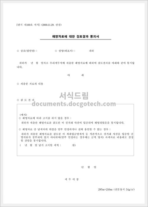 해명자료검토결과 통지서