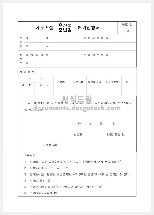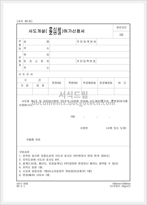 사도변경(개축, 증축, 폐지) 허가 신청서 작성 가이드 사도변경(개축, 증축, 폐지) 허가 신청서는 건축물의 구조나 용도를 변경하기 위해 제출해야 하는 문서입니다. 이 글에서는 허가 신청서의 사용…
