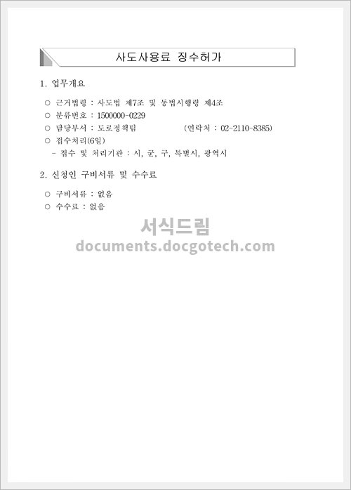 사도사용료 징수허가 신청서 작성 안내 사도사용료 징수허가 신청서의 사용용도 사도사용료 징수허가 신청서는 사용자가 사도사용료를 징수할 수 있는 권한을 허가받기 위해 작성하는 문서입니다. 이 신청서는 어떤…