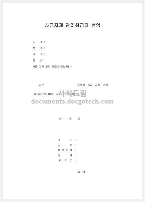 사급자재 관리책임자선임에 대한 정보 사급자재 관리책임자선임은 기업에서 자체적으로 자재를 관리하고 품질을 유지하기 위해 필요한 역할을 맡는 직위입니다. 이 글에서는 사급자재 관리책임자선임의 사용용도와 작성시 유의사항에 대해…