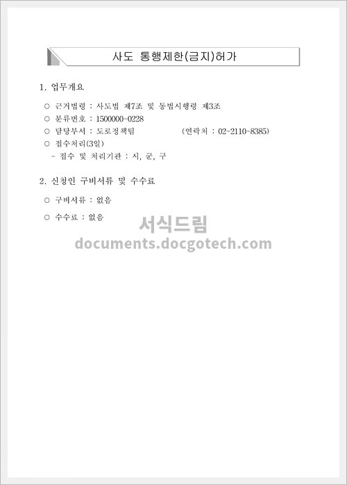 사도 통행제한(금지)허가 신청서 작성 가이드 사용용도 사도 통행제한(금지)허가 신청서는 특정 사람이 민간인들에게 통행 제한을 둘 수 있는 특별한 권한을 요청하는 문서입니다. 이는 보안 문제, 사생활…