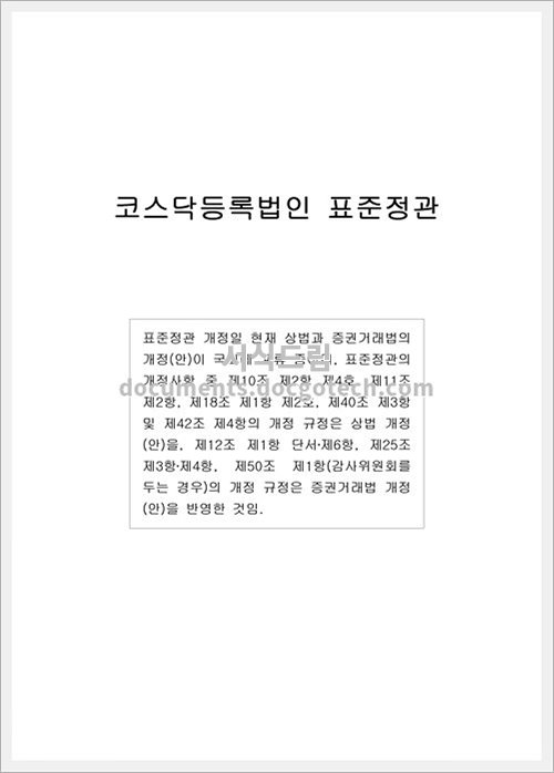 코스닥등록법인 표준정관 작성 가이드 코스닥등록법인 표준정관은 기업의 법적인 규칙을 담고 있는 문서입니다. 표준정관은 주식회사의 설립 및 운영에 대한 중요한 규정들을 포함하고 있어 비즈니스 활동을 효율적으로…