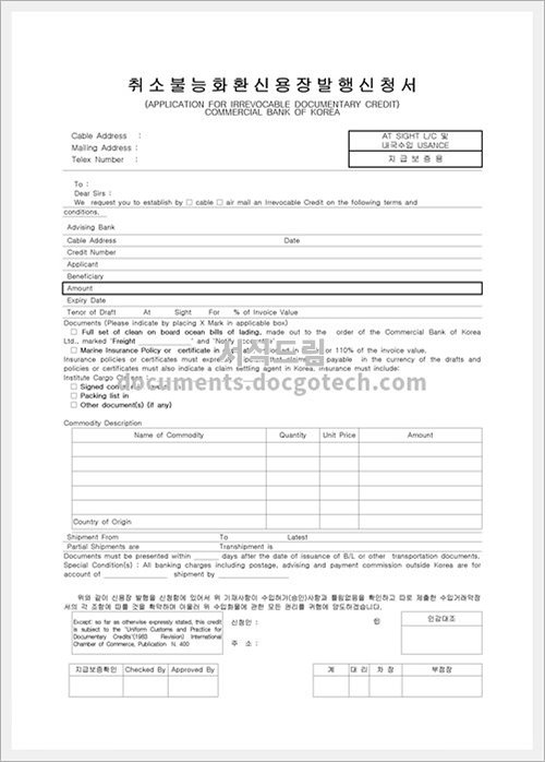 취소불능내국신용장개설 신청서 작성 가이드 취소불능내국신용장개설 신청서는 주로 국내에서 신용카드를 개설하기 위해 필요한 문서입니다. 이 글에서는 신청서의 사용 용도와 작성 시 유의사항을 안내합니다. 1. 사용 용도…