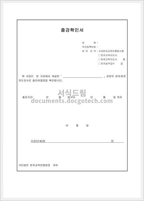 출강 확인서 사용 방법 및 작성 유의사항 출강 확인서는 교육 및 훈련 기관에서 학습 혹은 교육 과정을 이수한 사실을 증빙하는 문서입니다. 출강 확인서를 사용하는 주요…