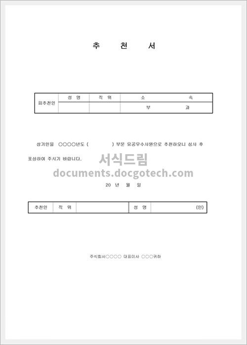 추천서 (포상) 작성 가이드 추천서는 어떤 개인이나 조직을 추천하는 문서로, 주로 잠재적인 고용주, 대학 등에서 필요로 합니다. 포상 추천서는 특히 어떤 사람이 우수한 성과를 이루어서…