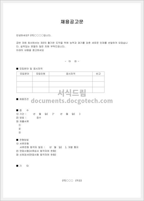채용 공고문 작성 시 유의사항과 사용 용도 채용 공고는 회사가 새로운 인재를 모집하기 위해 공개적으로 게시하는 문서입니다. 채용 공고문은 많은 구직자들이 회사에 대한 정보를 얻을…