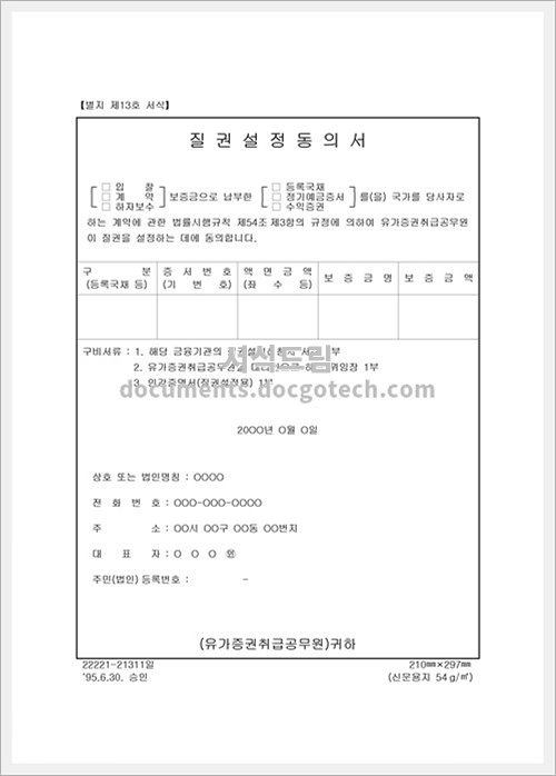 질권설정 동의서(국가 계약법13)의 사용용도와 작성시 유의사항 질권설정 동의서(국가 계약법13)는 부동산, 자동차 등과 같은 재산에 대한 질권 설정을 위해 사용됩니다. 이 동의서는 소유자가 자신의 재산에 대해…