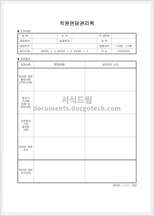 직원면담 카드 사용용도 및 작성 시 유의사항 1. 직원면담 카드의 사용용도 직원면담 카드는 조직 내에서 직원과 상사 간에 실시되는 면담을 기록하는 도구입니다. 이 카드를 사용함으로써…