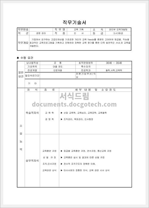 직무기술서 작성 가이드 1. 직무기술서의 사용용도 직무기술서는 개인이나 조직의 업무 임무를 수행하는데 필요한 기술 및 능력을 기술하는 문서입니다. 주로 인사관리, 업무 분석, 평가 등에 활용되며…