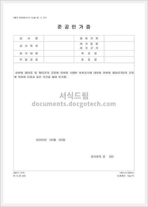 준공인가 신청서 (해양수산부) 작성 가이드 사용용도 준공인가 신청서는 해양수산부로부터 허가를 받기 위해 작성하는 문서입니다. 이 신청서는 수산시설, 어로, 자원사용, 경비 등과 관련된 내용을 상세히 기재해야…