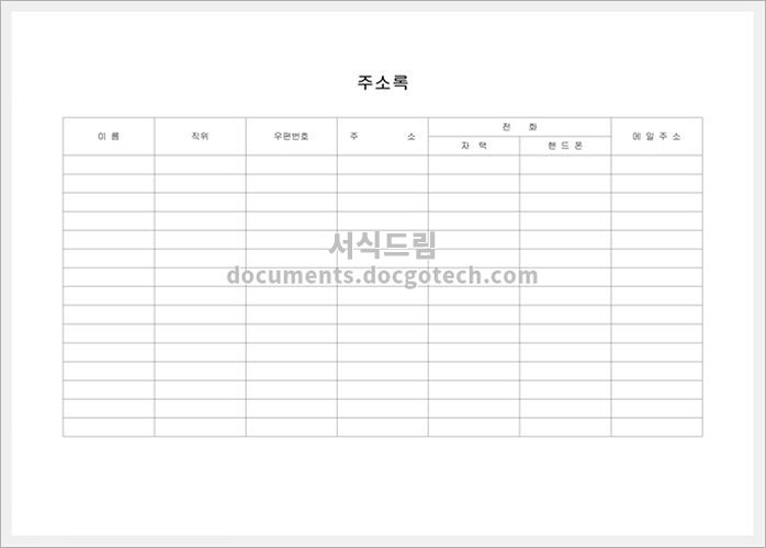 주소록의 사용용도 주소록은 개인이나 조직의 연락처 정보를 정리하고 관리하기 위한 도구입니다. 주소록을 작성하면 다음과 같은 이점을 얻을 수 있습니다. 주소록 작성시 유의사항 주소록을 작성할 때는…