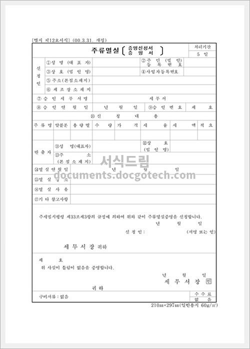 주류멸실 증명 신청서 증명서의 사용용도와 작성 시 유의사항 주류멸실 증명 신청서 증명서는 술의 멸실을 증명하기 위해 사용되는 문서입니다. 주류멸실은 정부 기관이나 보험 회사 등과 관련된…