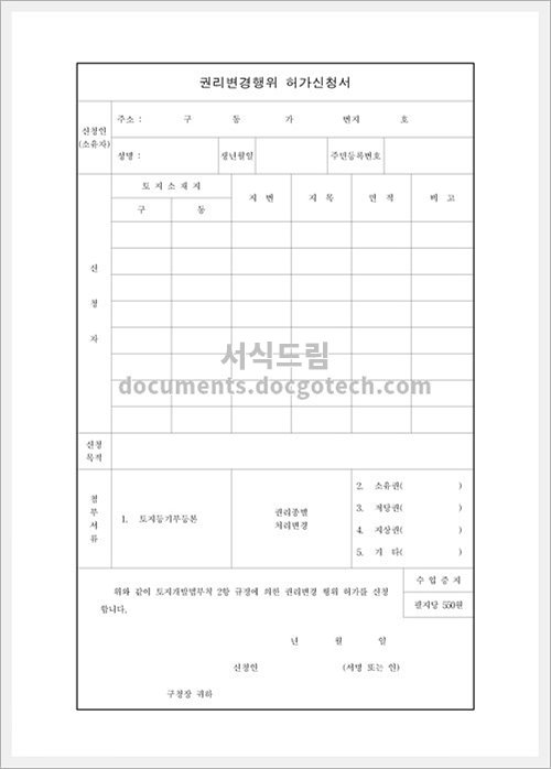 권리변경행위허가 신청서 사용용도 및 작성 시 유의사항 권리변경행위허가 신청서는 개인이나 기업이 특정한 권리를 변경하거나 행위를 하는 것에 대한 법적 허가를 얻기 위해 작성하는 서류입니다. 이…