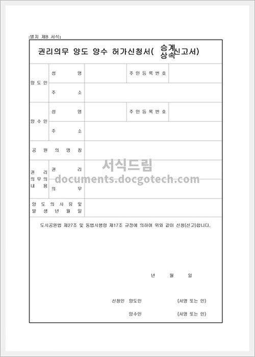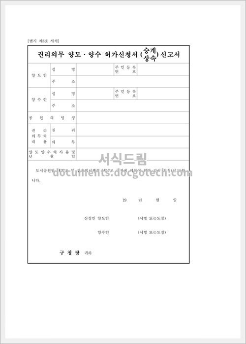 권리의무양도,양수허가 신청(승계,상속) 신고의 사용용도, 작성시 유의사항 권리의무양도,양수허가 신청은 일반적으로 재산의 권리나 의무를 양도 또는 양수하기 위해 필요한 절차를 의미합니다. 이는 승계나 상속과 관련하여 중요한 과정입니다.…