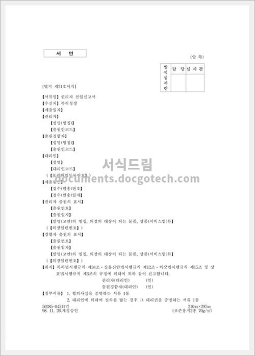 권리자선임 신고서 사용용도와 작성시 유의사항 1. 권리자선임 신고서 사용용도 권리자선임 신고서는 저작권, 상표권, 법인권 등의 권리를 보유한 자가 해당 권리 침해의 주장을 제기하고자 할 때…