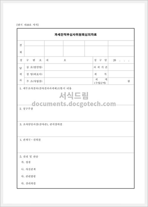 과세전적부심사결정서 사용용도 과세전적부심사결정서는 기업이 세무청에 제출하는 문서로, 세무조사 등 세금 관련 심사 절차를 거칠 때 사용됩니다. 이 문서는 기업의 과세 전적부를 검토하여 세무기관이 정한 기준에…