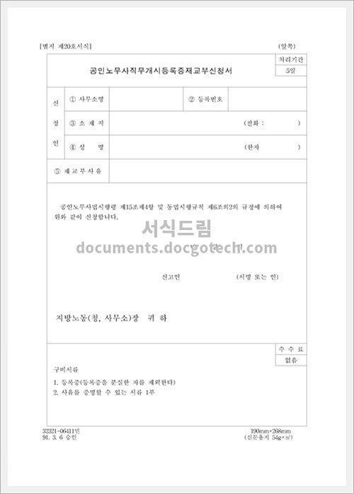 공인노무사직무개시등록 신청서 사용용도와 작성 시 유의사항 공인노무사직무개시등록 신청서는 공인노무사가 직업을 개시할 때 제출해야 하는 문서입니다. 이 글에서는 공인노무사직무개시등록 신청서의 사용용도와 작성 시 유의사항에 대해 알아보겠습니다.…