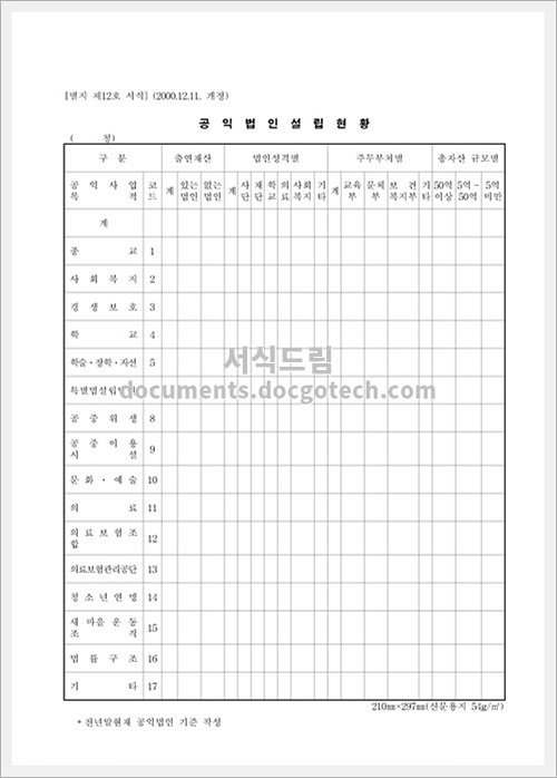 공익법인설립 현황의 사용용도, 작성시 유의사항 공익법인설립 현황은 공공적인 목적을 가지고 설립된 법인의 현황을 나타내는 문서입니다. 이 문서는 다양한 용도로 사용될 수 있으며, 주요한 사용용도 및…