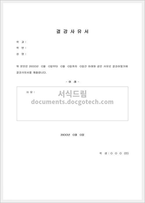 결강 사유서의 사용용도와 작성시 유의사항 결강 사유서는 학생이 학교 혹은 교육기관에 출석하지 못한 이유를 설명하는 문서입니다. 주로 학교나 교사에게 제출하며, 학부모나 보호자의 서명과 함께 제출합니다.…